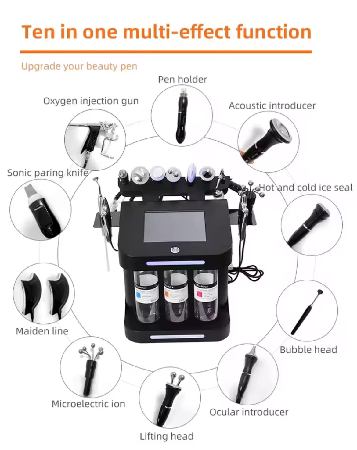 Das neuste Aquafacial Gerät 2024 mit 10 verschiedenen Aufsätzen in neuem schwarzen Design